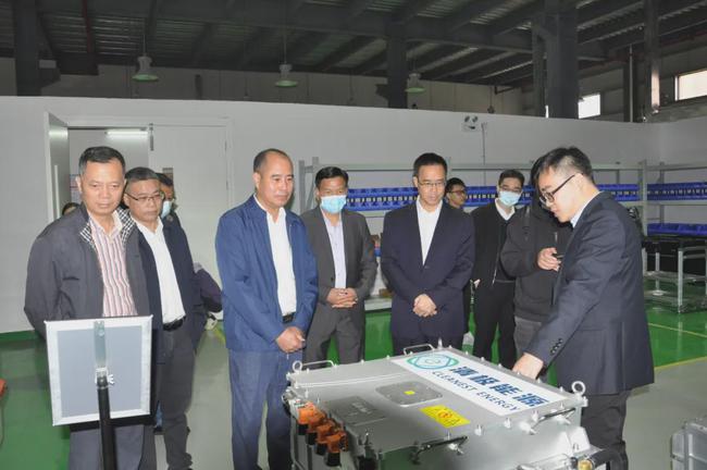 在清极能源生产车间,调研组一行参观了清极能源研发的电池电堆、动力系统和整车应用案例。清极能源相关负责人介绍,该公司是一家以氢燃料电池电堆和动力系统为核心业务,为新能源汽车厂家提供燃料电池动力系统解决方案和一站式工程化服务的国家高新技术企业。清极能源在科技园拥有5000多平米厂房,包括:燃料电池发动机系统生产、测试间;电气整改测试间;电堆研发、制造车间等,其中生产厂房占地3000多平米,年产能超5000套。