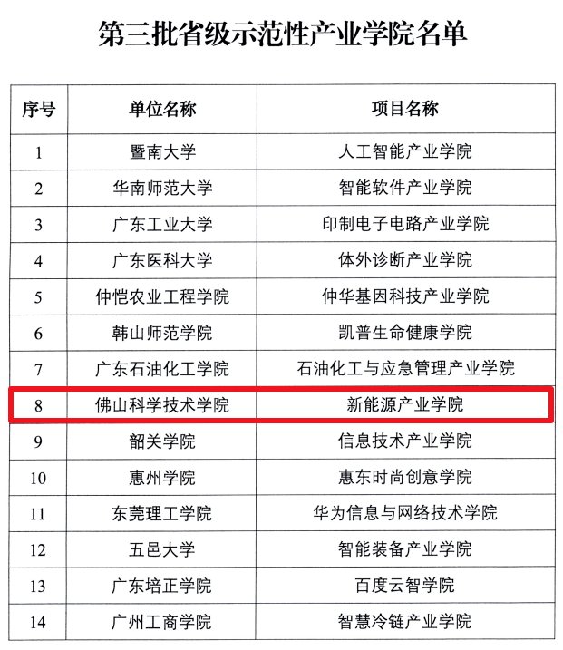 名单,经学校推荐、资格审核、通讯评审、现场答辩、公示等环节,广东高校14个产业学院获评第三批省级范性产业学院,