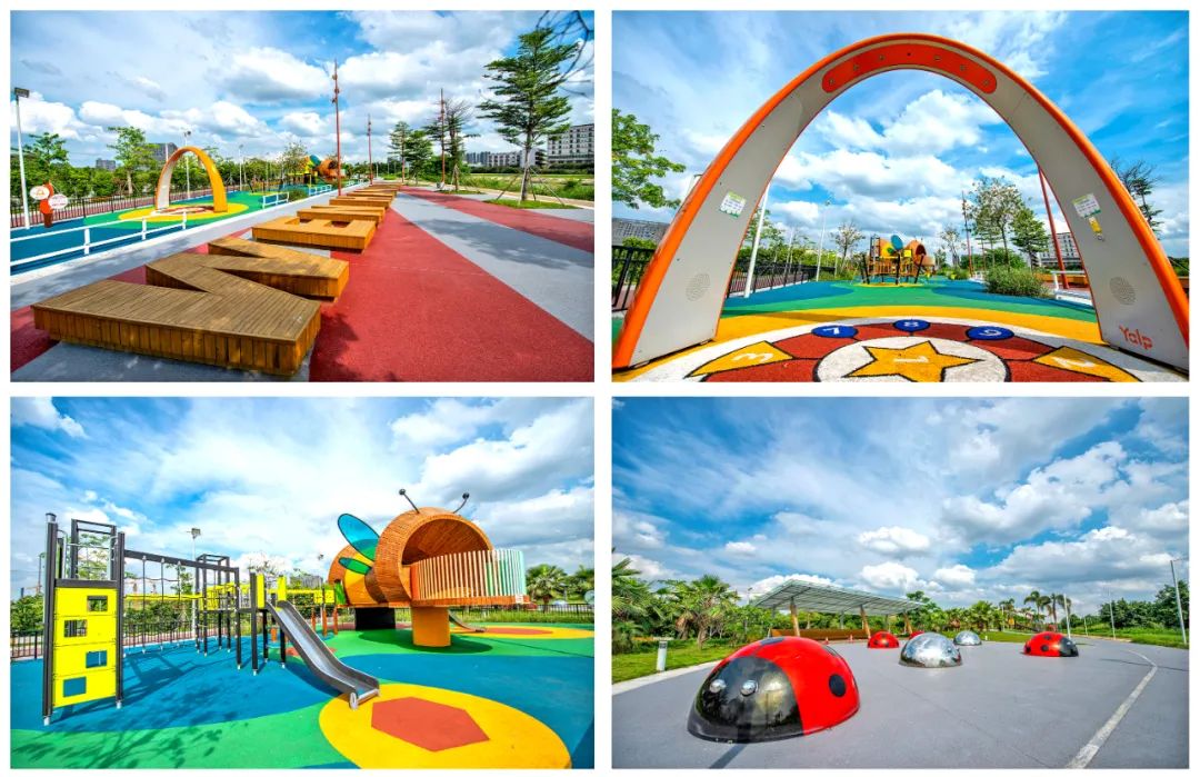 星光游乐园以儿童趣味设施为主,有专门为儿童设置的趣味滑梯、趣味攀爬墙、洞洞墙等。除此之外,在游乐场的南侧还建设了兼具观赏性和实用性的亲水木平台和以文翰湖英文名为形状的座椅,让家长也能有休憩的地方,同时满足家庭的亲子互动需求。