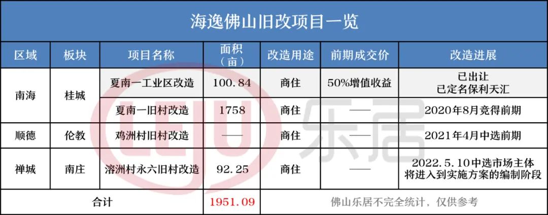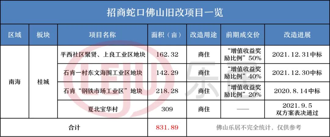 自2020年来,招商蛇口发力佛山旧改,且主要集中在南海桂城片区,已布局4宗项目,体量超831亩。