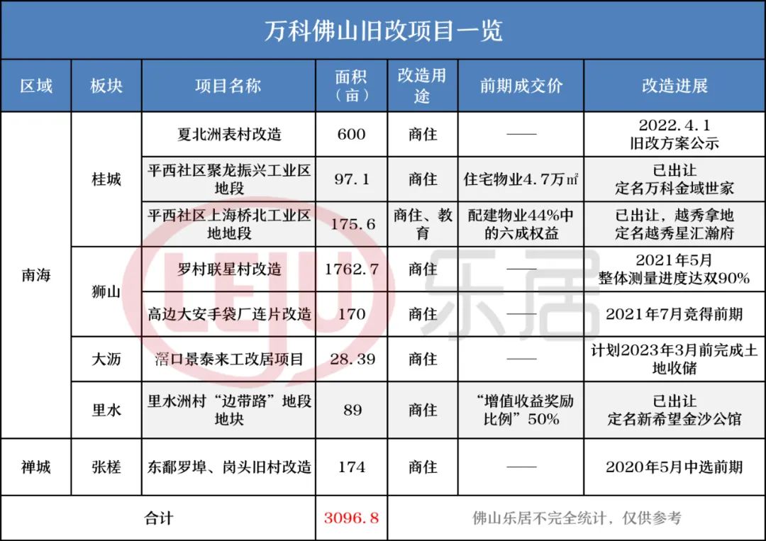 旧村改造方面,万科则拿下夏北洲表村、罗村联星村,目前均在推进中。