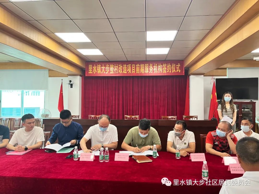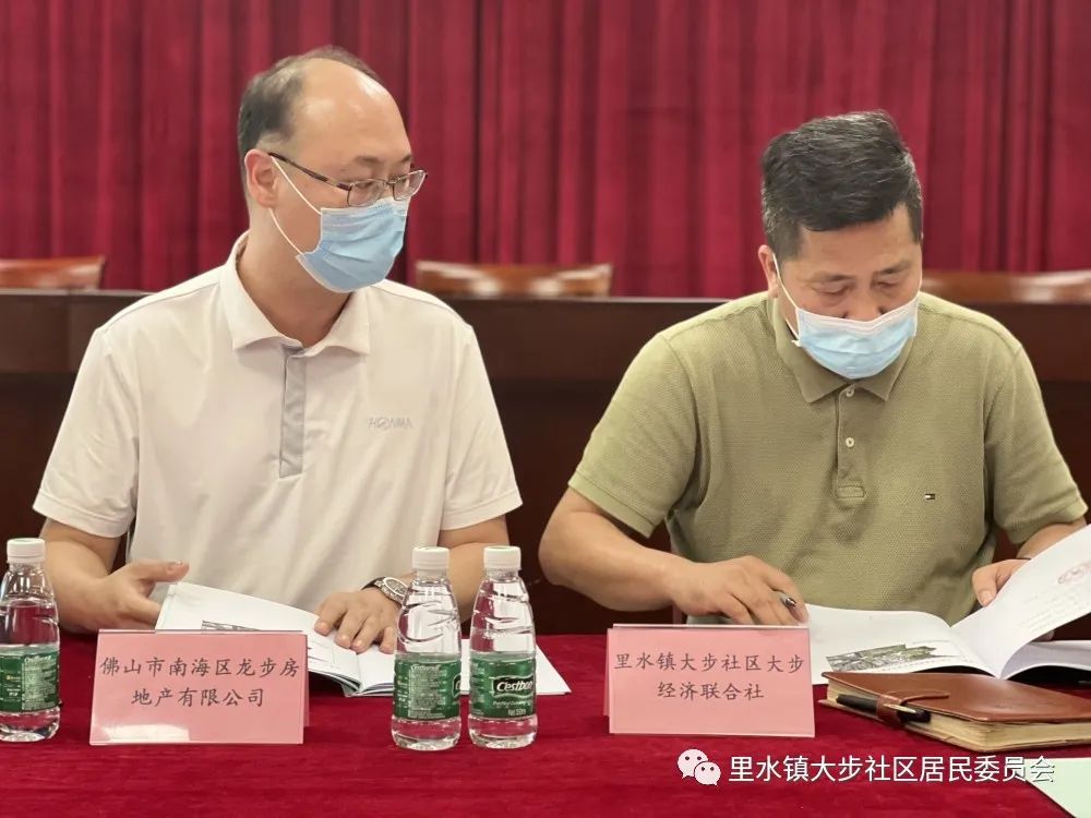 本次签约仪式,由前期服务机构佛山市南海区龙步房地产有限公司(即龙光)与8个改造主体负责人签署《佛山市南海区里水镇大步整村改造项目前期服务机构协议》。