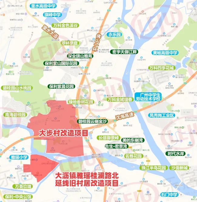 据悉,大步村整村改造项目用地面积约2373.01亩,早于2021年2月24日,以95.71%同意率通过了“整村改造”意愿表决。项目位于广佛江珠高速西侧,沈海高速广州支线南北两侧,在建桂澜路北延线于项目西侧穿过。