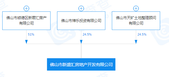 佛山市新盛汇房地产开发有限公司背后大股东为佛山市顺德区新君汇房产有限公司,占比达51%,曾在顺德陈村先后开发有君悦轩和新君汇花地湾等项目。