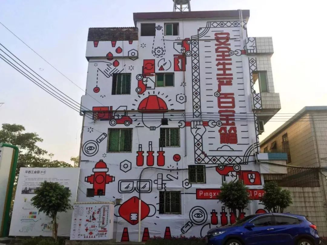 通过对陈旧物业统一翻新、修缮,增加配套设施,把“安全生产”文化融入园区,高标准高规格的将柚园工业园打造为街道的示范工业园。在完善消防设备系统,完善园区内环境外,项目将结合园区产业特色与楼体具体情况创作一系列主题涂鸦,以一种新颖的方式对园区进一步地宣传。